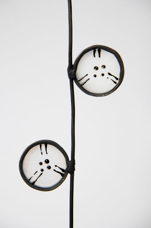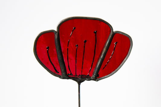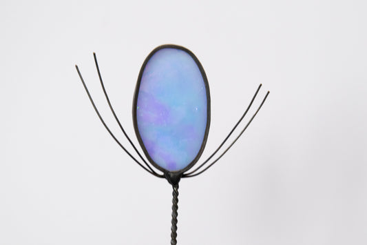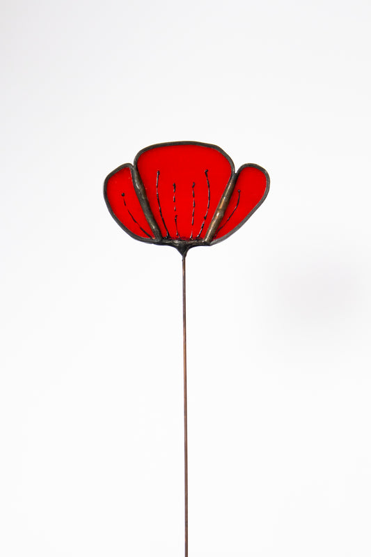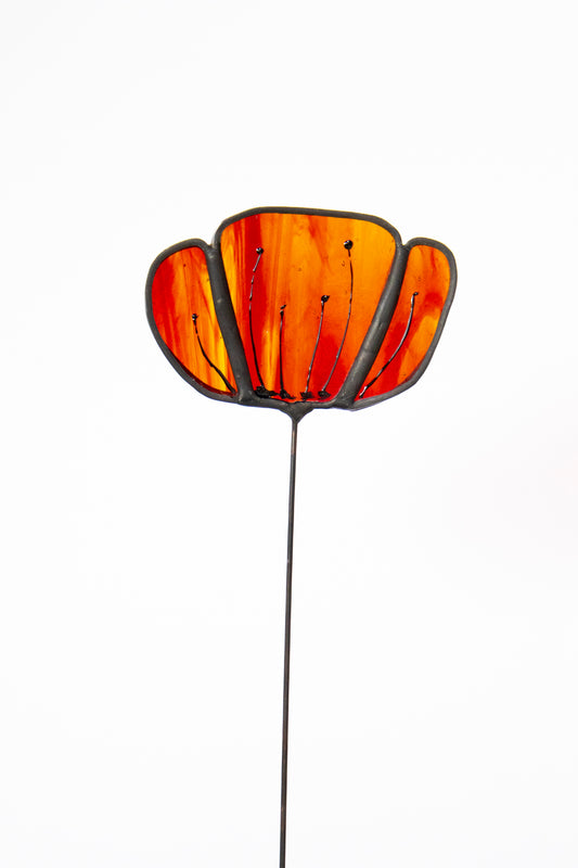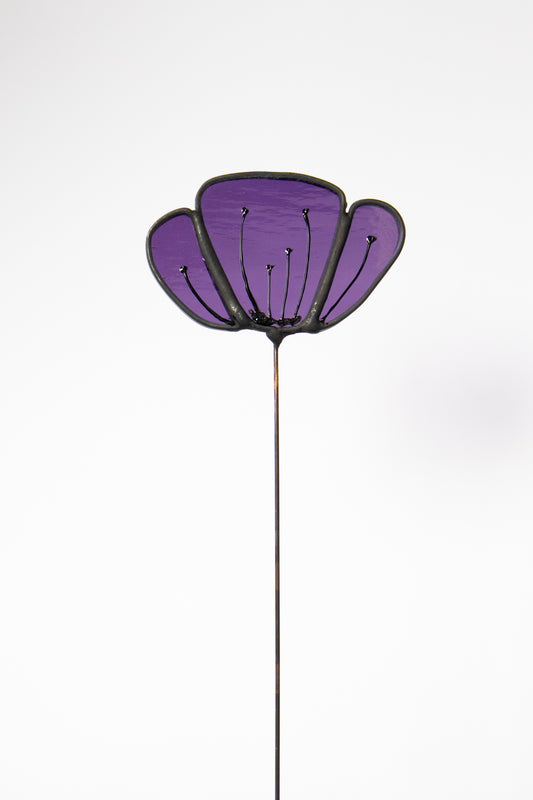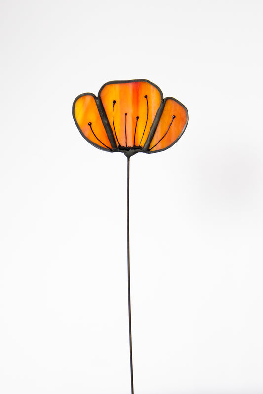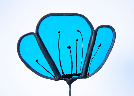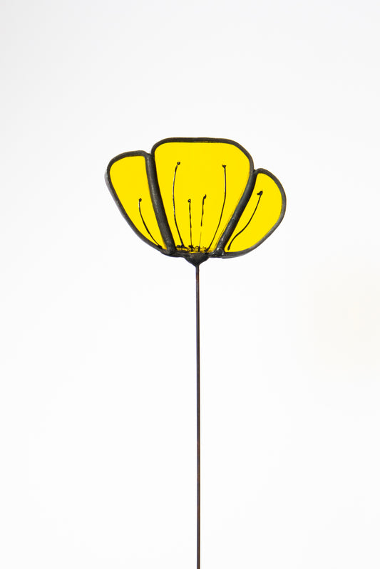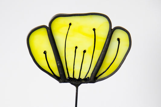 Artist Emily Smale founded Beetles & Bloom to share her collections of glass flowers and foliage. These pieces juxtapose traditional techniques of leading, painting and copper foiling with contemporary design to make heirloom quality ornamental artworks. The glass Emily uses is hand rolled, selected for the beautiful refractions of light its natural marks, textures and ripples create. Elegant single stems can be positioned to filter light, decorating a window ledge with glowing colour. Arrangements of several stems can create a sparkling bouquet of overlapping shape and colour.