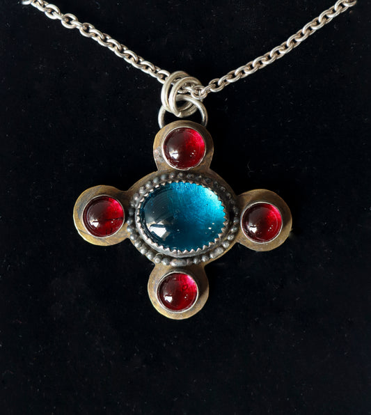 Blue and Red Pendant Necklace