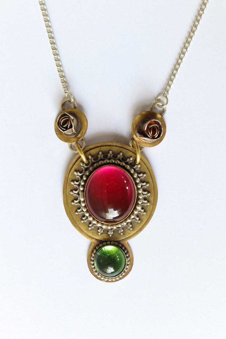 Green, Lilac and Red Pendant Necklace