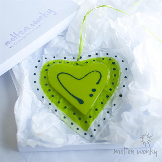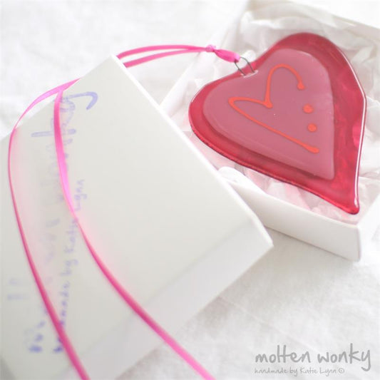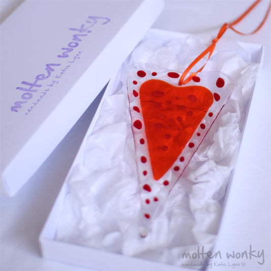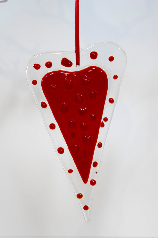 Red Dotty Love Heart Fused Glass Hanging Decoration