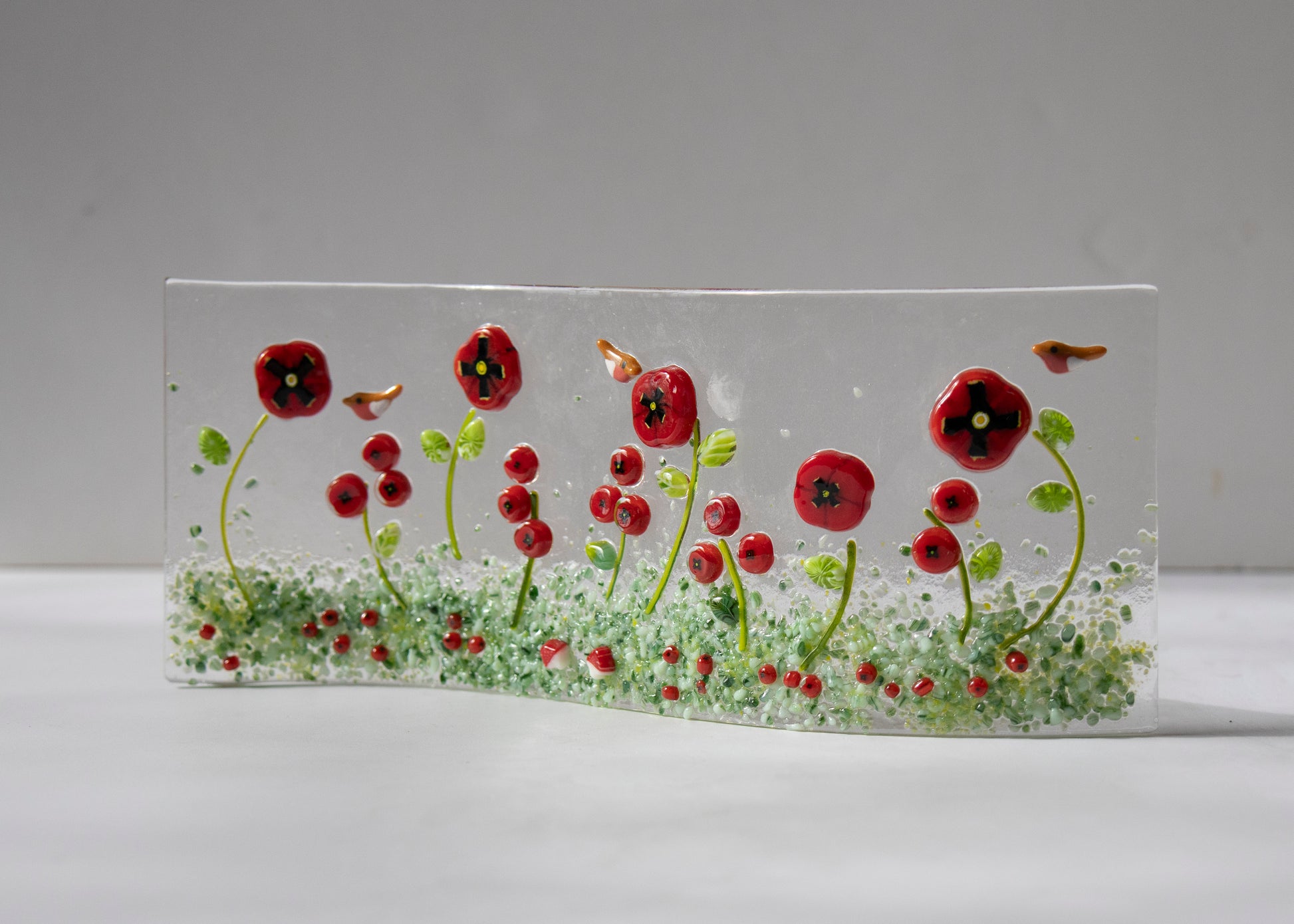 Long wave in a Spring flower design in fused glass handmade by artist June Massey.