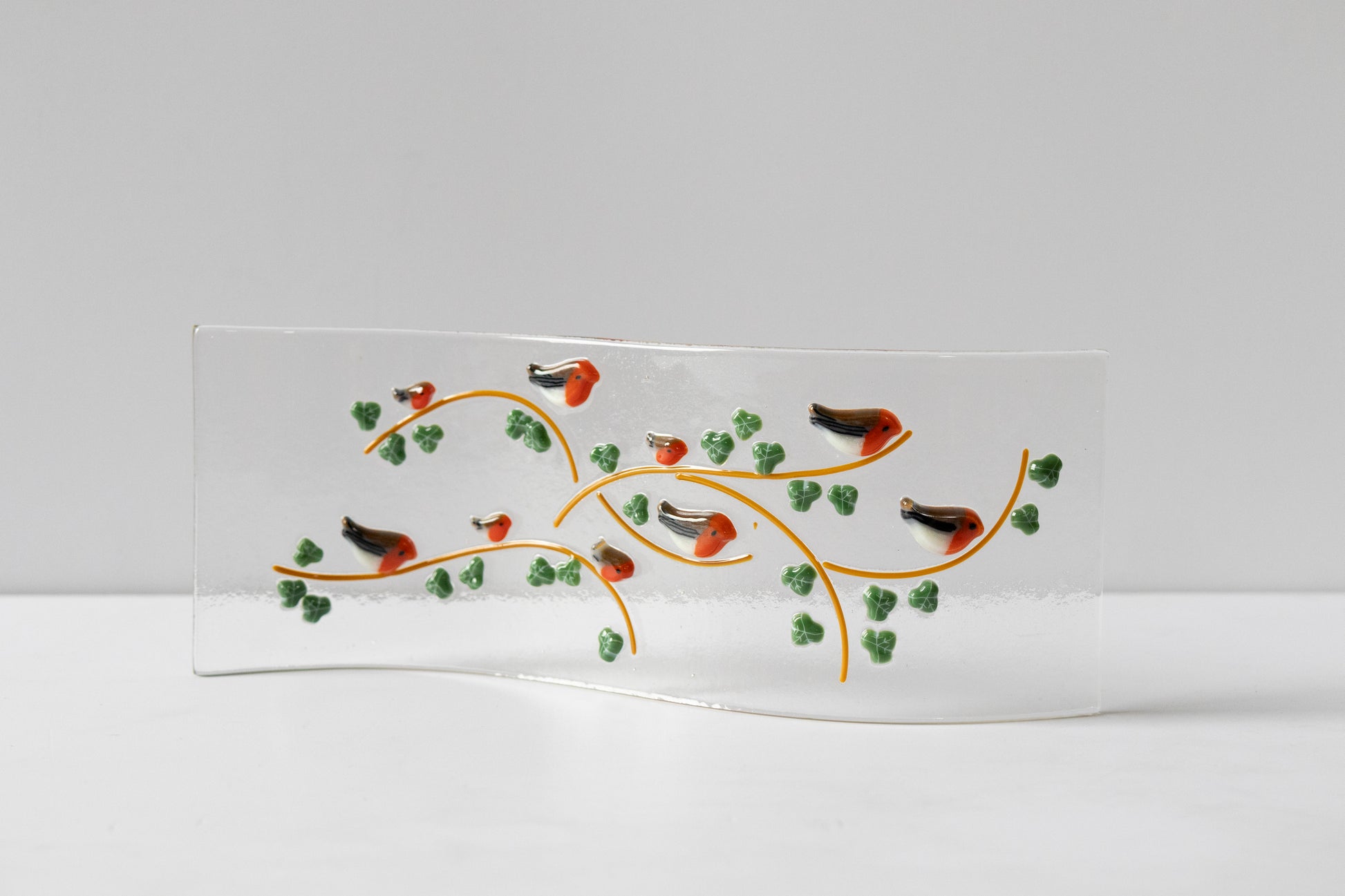 Long wave in a Winter design in fused glass handmade by artist June Massey.