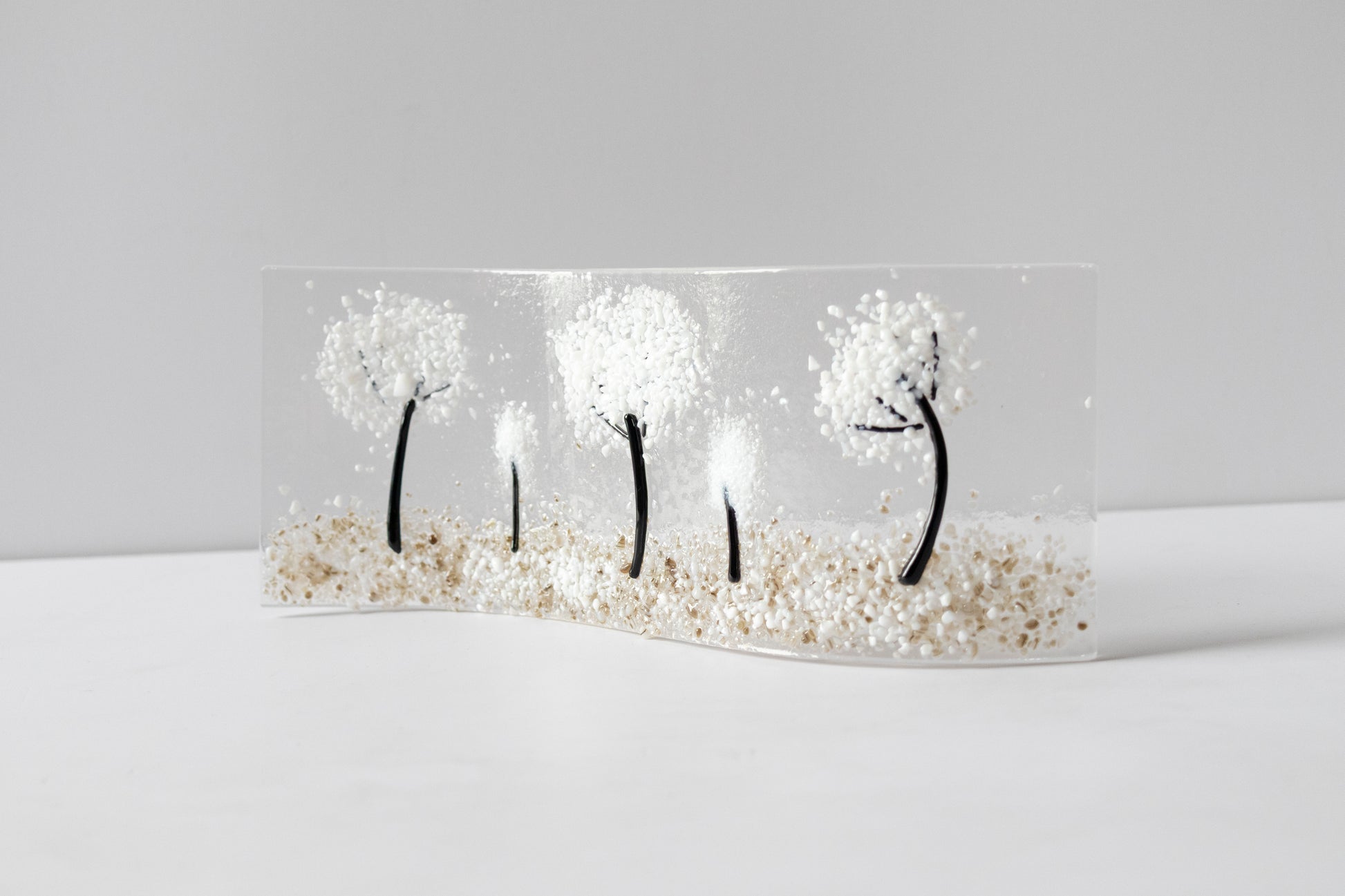 Long wave in a Winter design in fused glass handmade by artist June Massey.