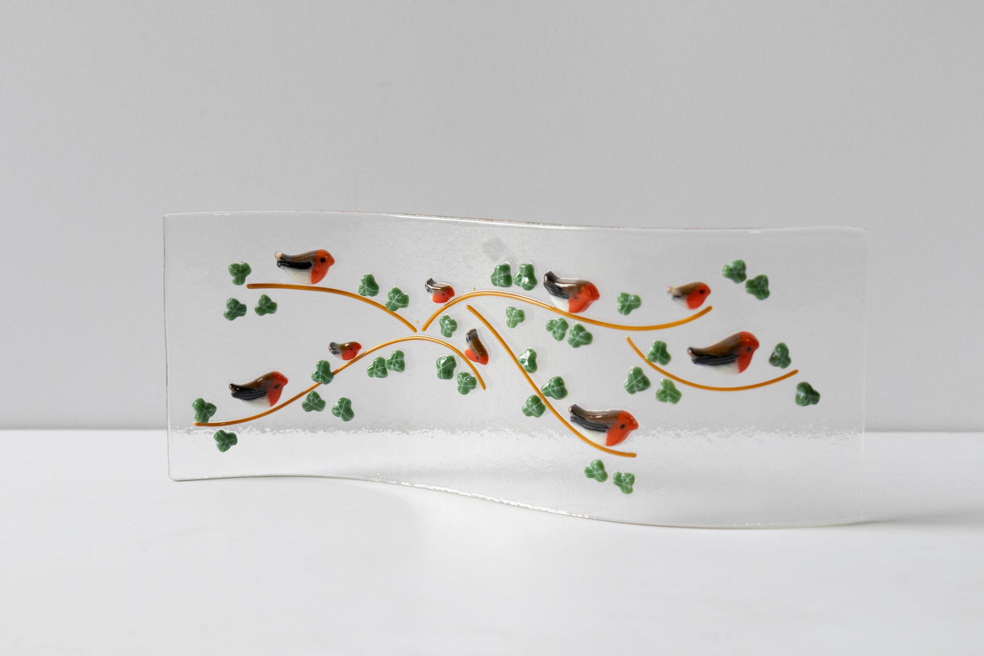 Long wave in a Winter design in fused glass handmade by artist June Massey.