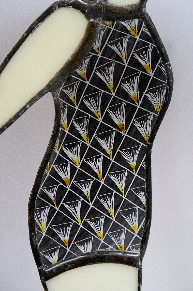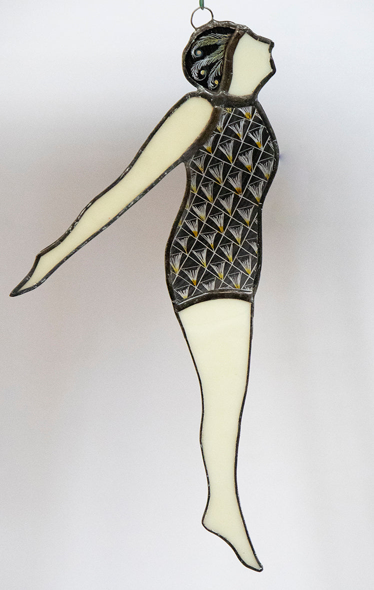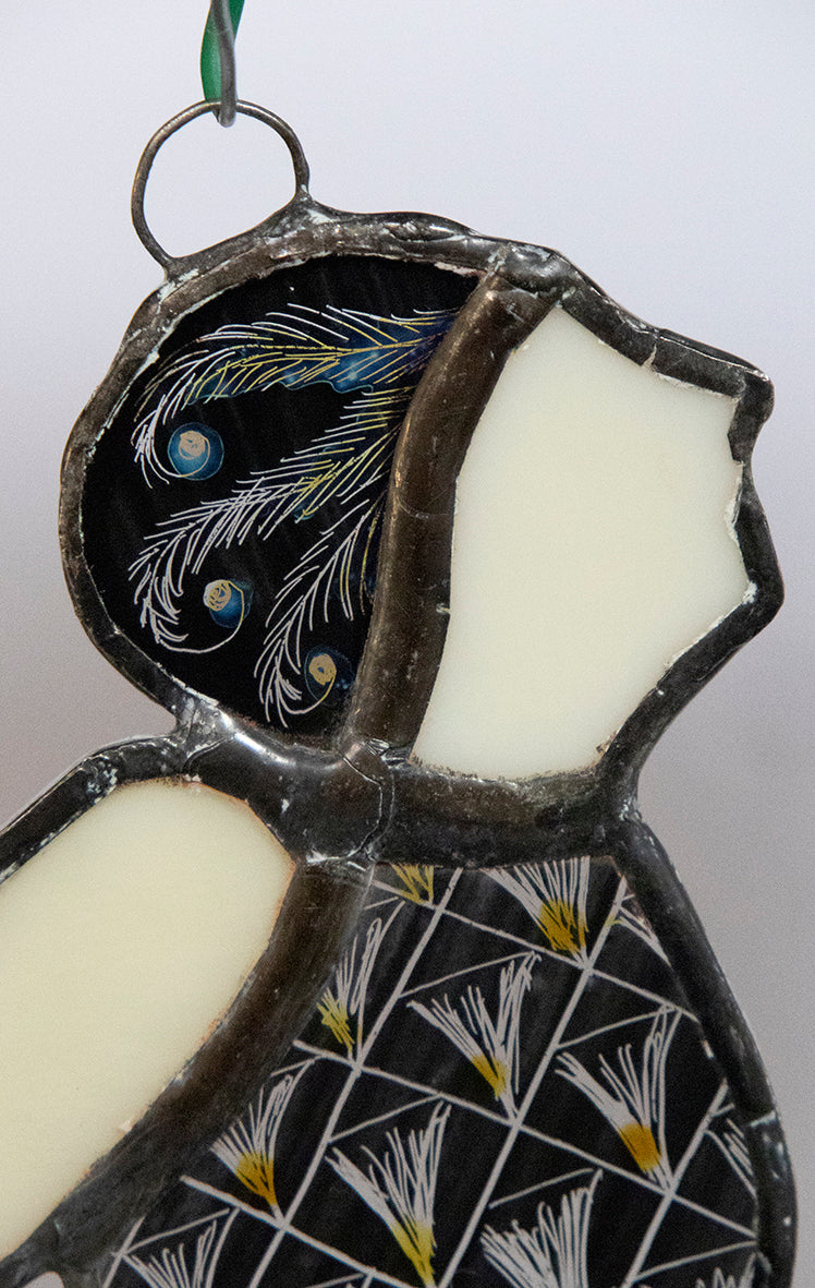 These are my handpainted pieces using specialist glass paints and silver stains by Reusche and Debitus. They are then kiln fired. This is the same method that has been used since the medieval times, and is inspired by my love of church windows and the feeling I get from being in water.