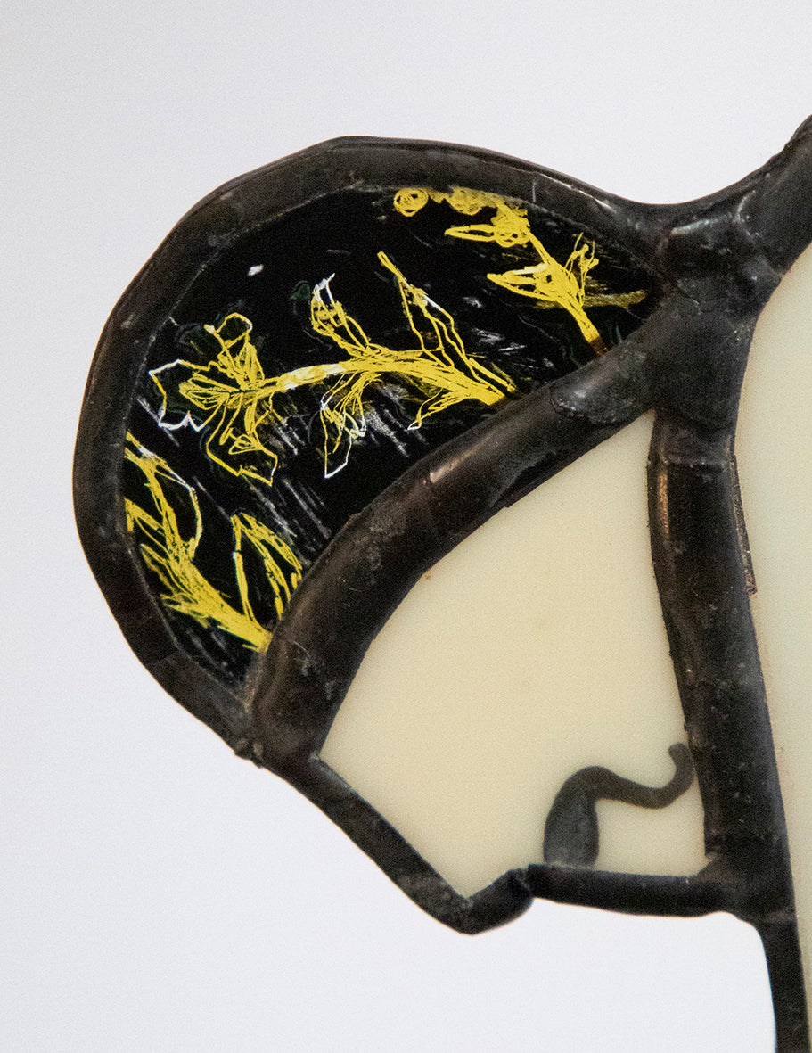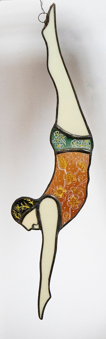 These are my handpainted pieces using specialist glass paints and silver stains by Reusche and Debitus. They are then kiln fired. This is the same method that has been used since the medieval times, and is inspired by my love of church windows and the feeling I get from being in water.