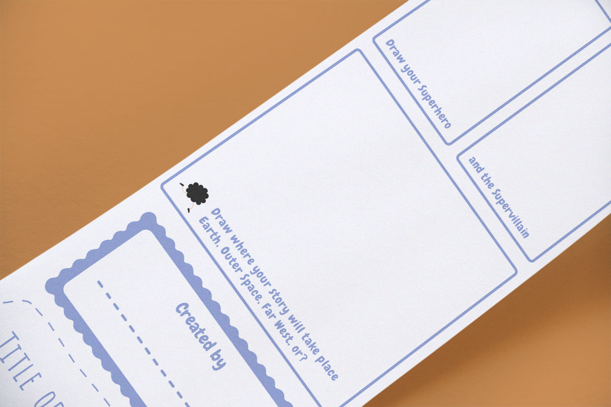 Design your own characters or use characters you already know and let them loose on the 1.65 meter long page.The empty comic frames will guide you to create your own story.