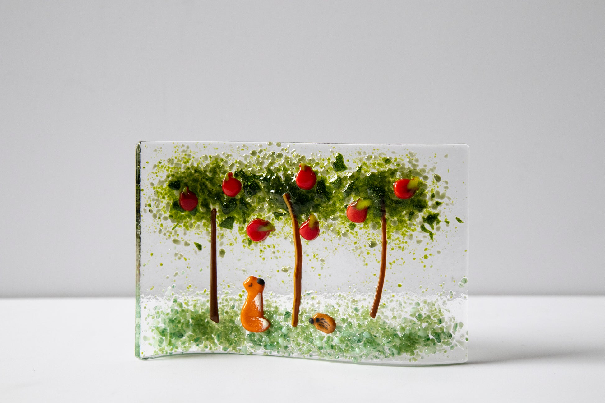 Small wave in a Autumn flower design in fused glass handmade by artist June Massey.